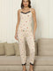 طقم بيجامة بنقشة فواكه مع حمالة صدر باللون البيج
