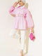 تونيك مخطط بأكمام منفوخة وخصر مرن باللون الوردي