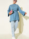 تونيك منخفض الأكمام مزدوج اللون نيلي