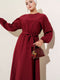 فستان عنابي اللون بخصر مطاطي