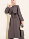 طقم ثنائي من قميص حكيم بياقة وعباءة بلون دخاني