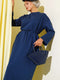 | Name | فستان أزرق داكن برباط وأكمام مطرزة |
