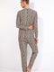 طقم بيجامة من جلد سويدي بياقة دائرية وأكمام طويلة بنقشة جلد النمر