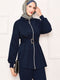 - Ürün mevsimliktir. Ürün tunik ve pantolon olmak üzere iki parçadan oluşmaktadır. Tunik boydan fermuarlı pile detaylı ve belden seyyar kemerlidir. Pantolon belden lastiklidir