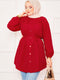 قميص حجاب أحمر ذو ياقة مزدوجة وخصر مربوط