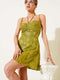 فستان قصير مطرز بأشرطة حبلية، أخضر زيتي