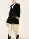 معطف كشمير أسود بحزام وأزرار ذهبية