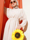 فستان أيروبين بخصر مطاطي وحزام باللون البيج