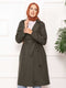 معطف ترنش مريح مزدوج الصدر مزود بحزام بلون كاكي