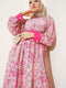 فستان قصير بطبعة زهور وردية