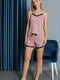 طقم بيجامة فيسكوز ميني هارت دانتيل مع شورت بودرة