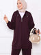طقم أويشو من قطعتين مزين بأحجار متناثرة وسحاب، لون عنابي
