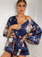 ثوب نوم خيالي من الساتان المنقوش باللون الأزرق الداكن