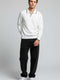 سويت شيرت رجالي أبيض بياقة بولو وأكمام طويلة محبوك