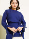 بدلة أساسية من قطعتين مع تنورة مربوطة، أزرق داكن