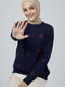 سترة محبوكة مطرزة على شكل قلب باللون الأزرق الداكن