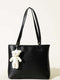 حقيبة إكسسوارات على شكل دب تيدي بمقبض رفيع، لونها أسود.