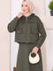 بدلة حجاب تنورة قصيرة بغطاء رأس وسحاب باللون الكاكي