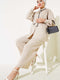 بدلة مزدوجة مع حزام بلح البحر مخيط باللون البيج