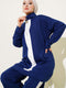 بدلة لويشا مخططة من قطعتين بسحاب نصف أزرق داكن