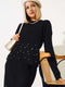 طقم تريكو مزين باللؤلؤ من قطعتين باللون الأسود