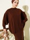 طقم تونيك كبير الحجم مع تنورة محبوكة من قطعتين، لون بني