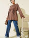 تونيك بفتحة جانبية وأكمام مزدوجة كستنائي