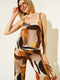 طقم من قطعتين بنقشة مميزة وحمالات رفيعة بلون القهوة