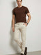 بنطلون رجالي من قماش الجبردين مع رباط عند الخصر، بيج