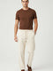 بنطلون رجالي من قماش الجبردين بحزام خصر مطاطي، بيج
