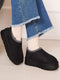 حذاء قصير ذو نعل سميك وبطانة من الفرو باللون الأسود