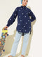 قميص كتان مطبوع عليه قلب أزرق داكن