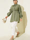 قميص بأكمام مكشكشة وحزام حبلي باللون الأخضر اللوزي