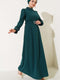 فستان بكسرات على الأكمام والياقة مصنوع من حجر الزمرد