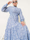 | Name | فستان نيلي منقوش بأكمام وياقة مضلعة |