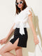 بلوزة شيفون بيضاء ذات ياقة مربوطة وصدر مزدوج