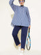 قميص فضفاض ذو خطوط رفيعة، باللون الأزرق الداكن.