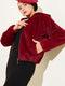 سترة كشمير قصيرة بغطاء رأس، لون عنابي