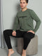 طقم بيجامة رجالي كاكي مع طباعة أمامية وأرجل مرنة
