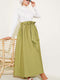 تنورة واسعة بحزام ذاتي، لون أخضر لوزي