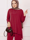 طقم ساندي قطعتين كاجوال باللون الأحمر