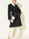 معطف ترنش أسود اللون مع أزرار وكتف مكشكش