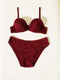 طقم حمالة صدر بدون بطانة منقوش ذاتي اللون أرجواني غامق