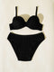 طقم حمالة صدر بدون بطانة منقوش ذاتي اللون أسود