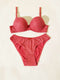 طقم حمالة صدر مبطنة بنقشة الجاكار وزهرة الرمان