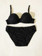طقم حمالة صدر مبطنة بنقشة جاكار باللون الأسود
