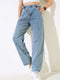 بنطال جينز واسع بمشبك جانبي - لون ثلجي فاتح