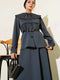 طقم من قطعتين: تنورة بياقة بيتر بان وأزرار، لون رمادي دخاني