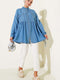 قميص جينز صغير مزهر بجيب على الصدر، أزرق فاتح