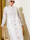 قميص طويل بأزرار معدنية وجيوب حجرية